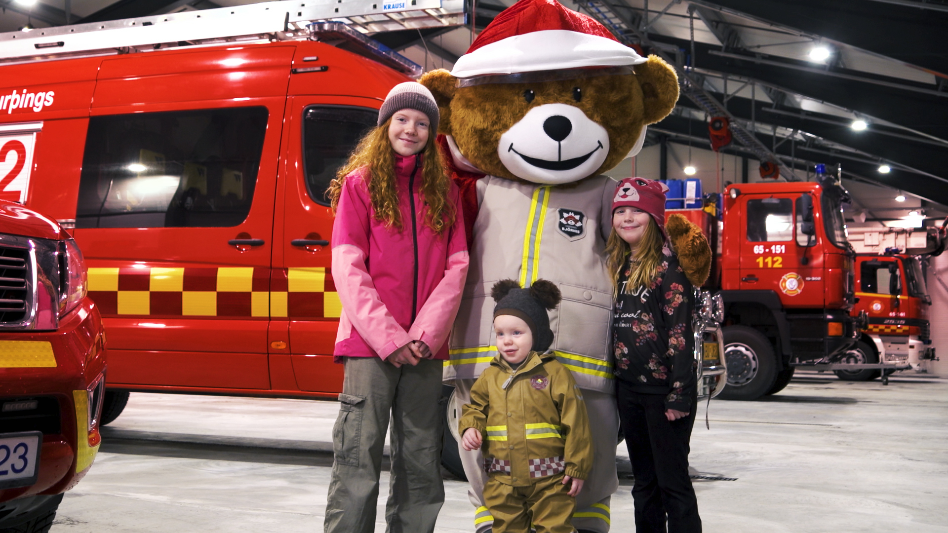 Brunabangsinn Björnis kom í heimsókn til Húsavíkur í dag til að minna börnin í bænum á mikilvægi eldvarna í aðdraganda jóla. Hann hitti eftirvæntingarfull börn á Jólatorginu við Garðarshólma þar sem Slökkvilið Norðurþings var einnig með bás með eldvarnarbúnaði. Það var mikill fjöldi barna og foreldra sem tók á móti Björnis.