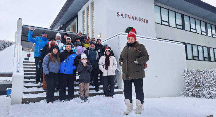 „Við buðum Enikő í þessa ferð til að gleðja hana á stóra afmælinu. Við erum 17 saman að ferðast,“ segir Kendi, skipuleggjandi ferðarinnar. „Enikő langaði að sjá norðurljósin og við sáum þau á fyrsta kvöldinu okkar hér á Húsavík. Náttúran hér í kring og Sjóböðin heilla okkur mikið og við höfum einnig heimsótt söfnin í bænum og erum að njóta dvalarinnar hér vel.“