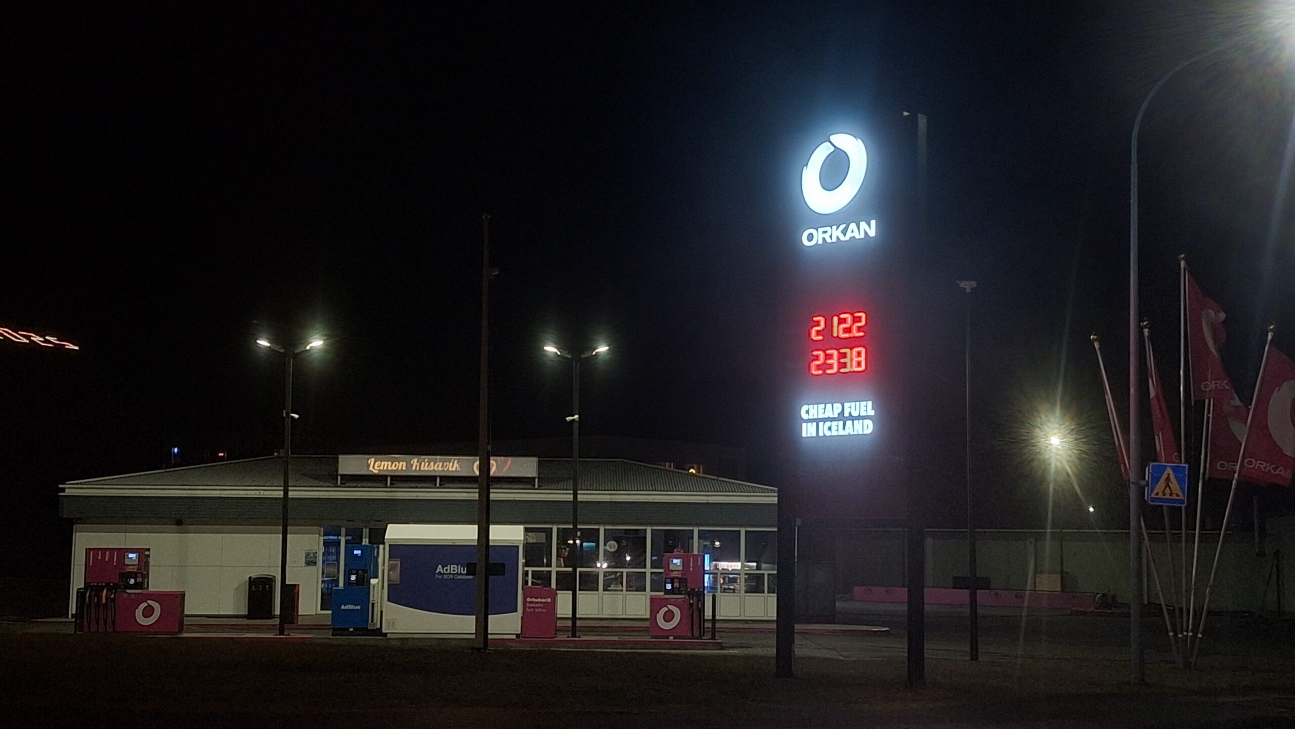 At Orkan in Húsavík, 95-octane petrol is now priced at ISK 212.1 per liter and diesel at ISK 233.6 per liter. It drew attention that the price reduction had already been implemented there around 10:00 p.m. last night, two hours before midnight, when a Húsavík.com reporter recorded the prices. Based on previous prices of around ISK 308–314, according to Orkan’s website, this corresponds to a reduction of about 31 percent for petrol and around 26 percent for diesel, in line with what has been seen elsewhere in the country.