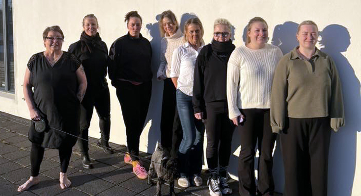 Nú um mánaðarmótin fór af stað fjórði árgangur heilsunuddnema við Framhaldsskólann á Húsavík. Í þetta skiptið hófu tíu konur námið undir handleiðslu Helgu Bjargar Sigurðardóttur heilsunuddara, sem hefur haldið utan um verklega kennslu við brautina. Konurnar koma frá Þórshöfn, Akureyri, Eskifirði og tvær alla leið frá Stykkishólmi og þær ætla að mæta til Húsavíkur aðra hverja helgi núna fram á vorið í námið við FSH. Verklegu annirnar eru fjórar þannig að þegar náminu líkur verða þær sennilega farnar að kalla sig húsvíkinga. Helga Björg sendi okkur meðfylgjandi mynd af sér með hluta af nemendahópnum og aðstoðarkennaranum, hundinum Lúnu.