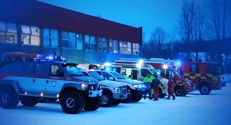 Viðbragðsaðilar á Húsavík heimsækja í dag nemendur á Leikskólanum Grænuvöllum og í Borgarhólsskóla í tilefni 112 dagsins. Það var mikil eftirvænting hjá tveggja og þriggja ára nemendum á deildinni Fossi á Grænuvöllum meðan beðið var eftir að fara út að skoða öll bláu blikkandi ljósin nú í morgun.