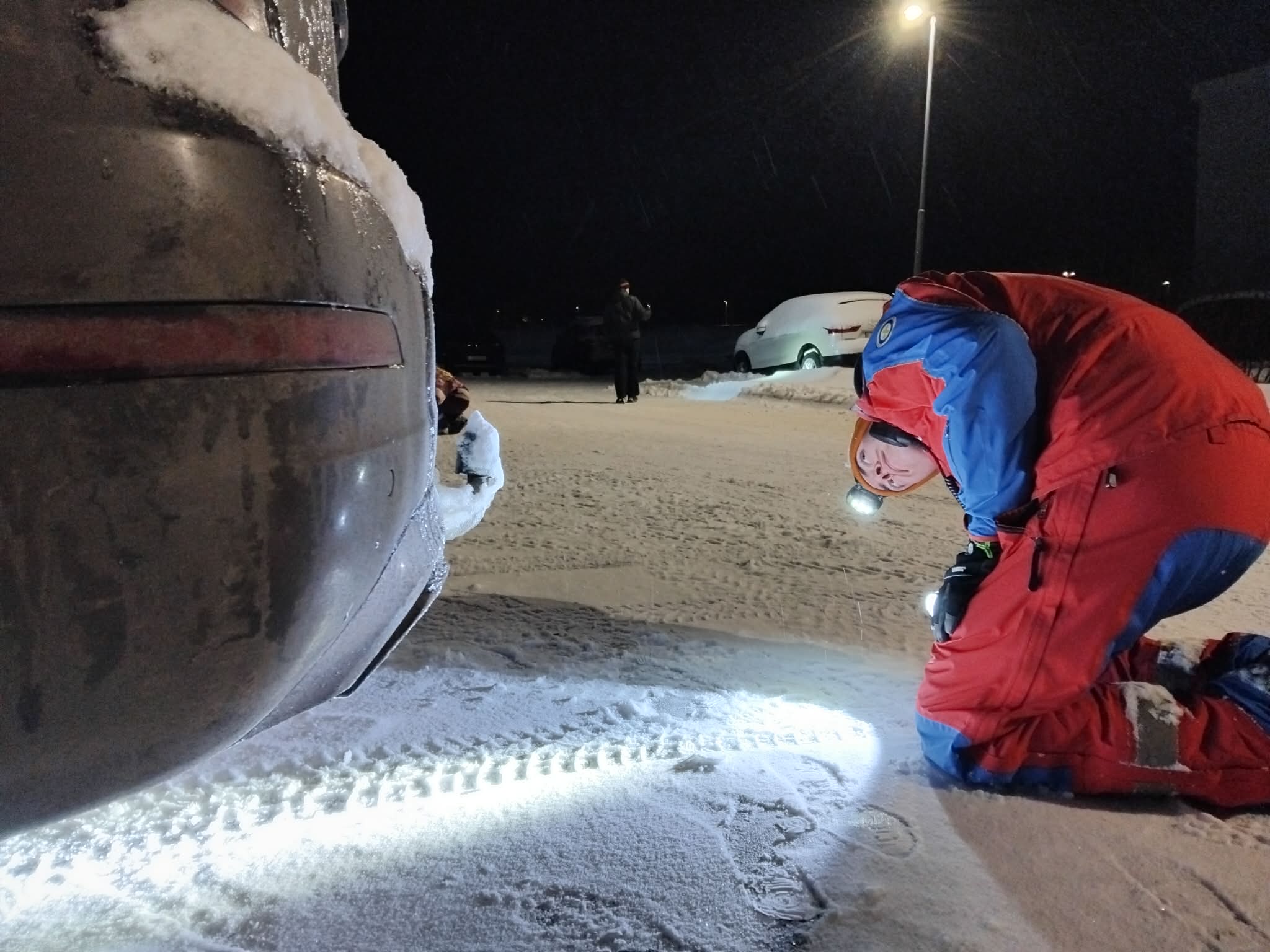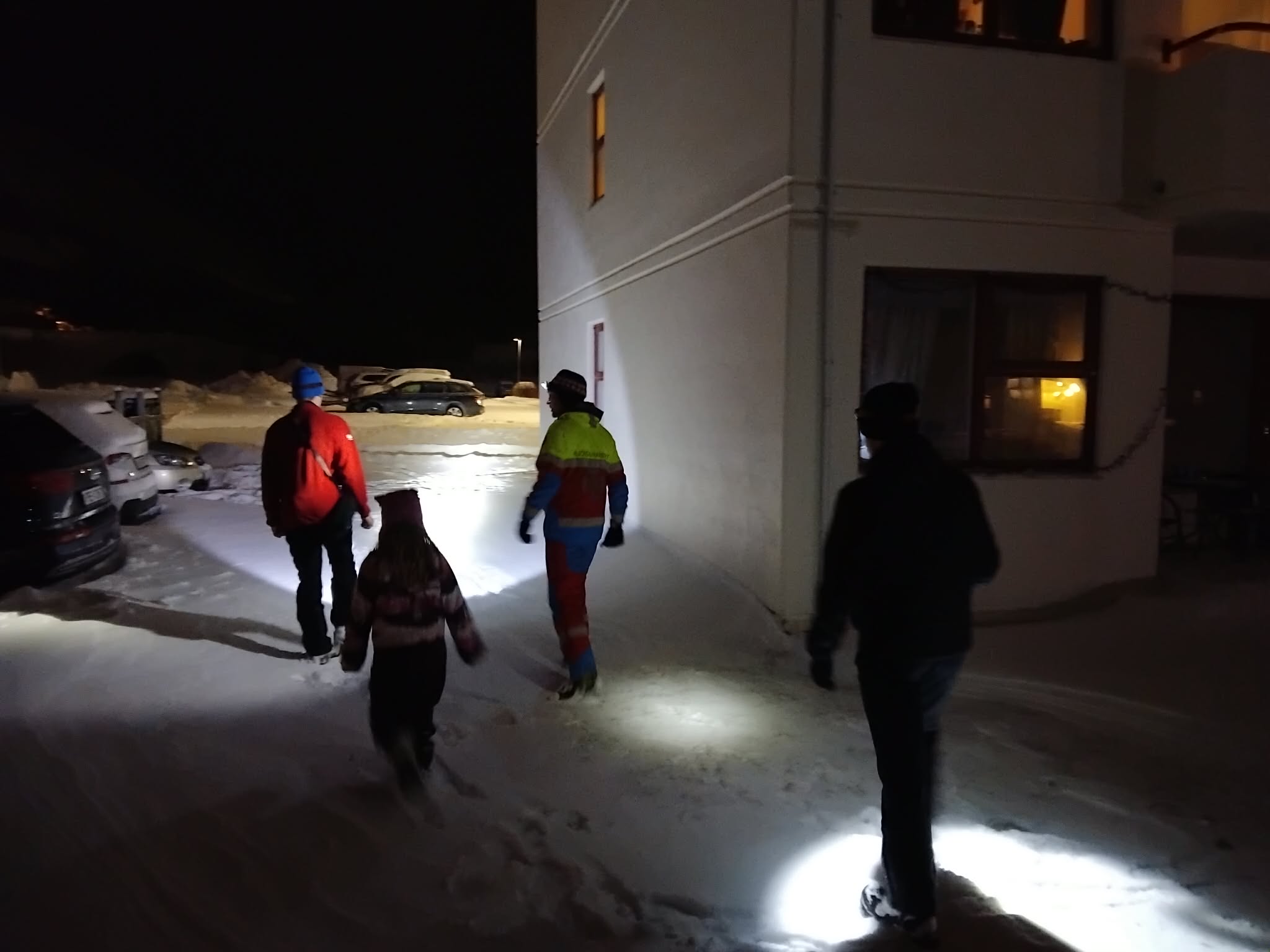Blaðamanni Húsavík.com var boðið að slást í hópinn með björgunarsveitinni. Leitað var á skilgreindum leitarsvæðum í nágrenni þess staðar þar sem Þoka týndist og síðan víðar um bæinn eftir fyrirfram ákveðinni áætlun. Farið var skipulega yfir skúra, undir palla og önnur skjól þar sem innikisa gæti leitað vars.