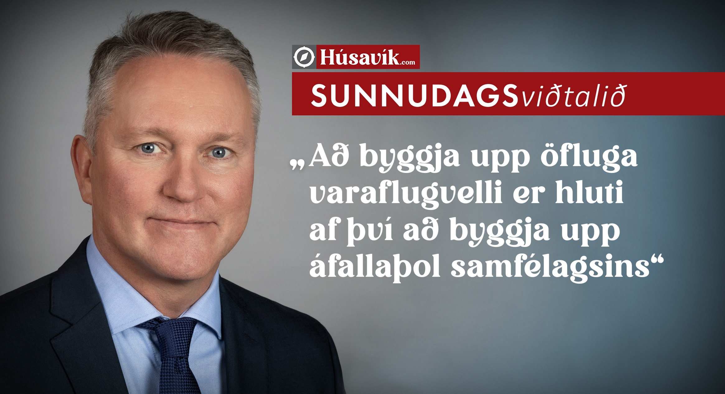 Telur þú að næg pólitísk samstaða geti skapast á Alþingi um framtíðarsýn í flugmálum? „Það er mikilvægt að það náist pólitísk samstaða um framtíðarsýnina í fluginu. Við búum við aðstæður hér í miðju Norður-Atlantshafinu að öflugar samgöngur eru okkur lífsnauðsynlegar. Síðan er mikilvægt að það sé samstaða um uppbyggingu flugvallakerfisins og að því sé viðhaldið með viðunandi hætti. Varaflugvallagjaldið er mikilvægur þáttur í þessu sambandi.“