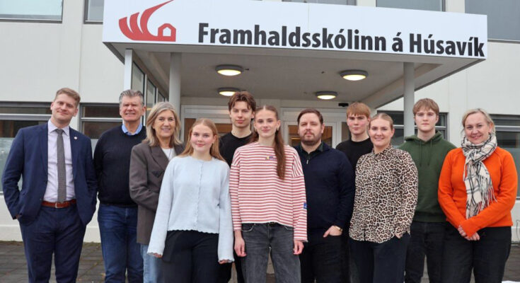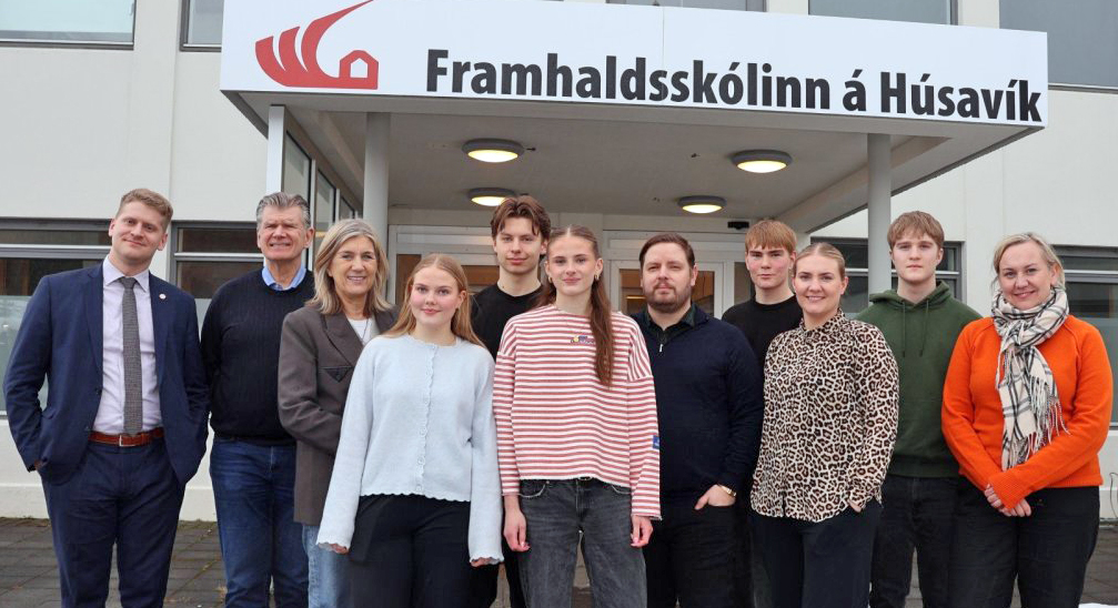 Á meðfylgjandi ljósmynd af vef Framhaldsskólans á Húsavík eru ásamt nemendum og skólameistara þau Hanna Katrín Friðriksson atvinnuvegaráðherra og Þorbjörg Sigríður Gunnlaugsdóttir dómsmálaráðherra, auk þingmannanna Gríms Grímssonar og Ingvars Þóroddssonar úr Norðausturkjördæmi.