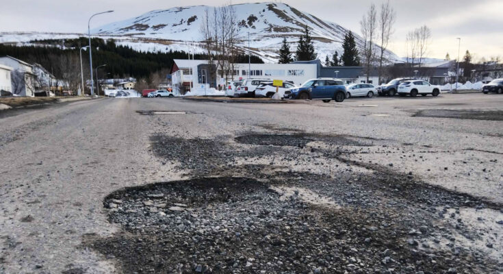 Götur á Húsavík eru að koma illa undan snjó og víða í bænum má finna stórar og djúpar holur. Vegna bleytu og snjóalaga er ekki unnt að ráðast í varanlegar viðgerðir að svo stöddu. „Tíðarfar og viðhaldsleysi í gegnum tíðina eru helstu ástæðurnar fyrir því af hverju götur eru að koma svo illa undan vetri nú. Þetta er allt að verða komið á tíma,” segir Trausti Aðalsteinsson bæjarverkstjóri Norðurþings á Húsavík.