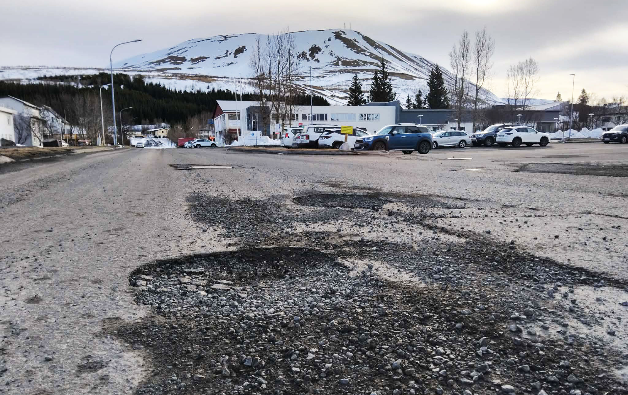Götur á Húsavík eru að koma illa undan snjó og víða í bænum má finna stórar og djúpar holur. Vegna bleytu og snjóalaga er ekki unnt að ráðast í varanlegar viðgerðir að svo stöddu. „Tíðarfar og viðhaldsleysi í gegnum tíðina eru helstu ástæðurnar fyrir því af hverju götur eru að koma svo illa undan vetri nú. Þetta er allt að verða komið á tíma,” segir Trausti Aðalsteinsson bæjarverkstjóri Norðurþings á Húsavík.