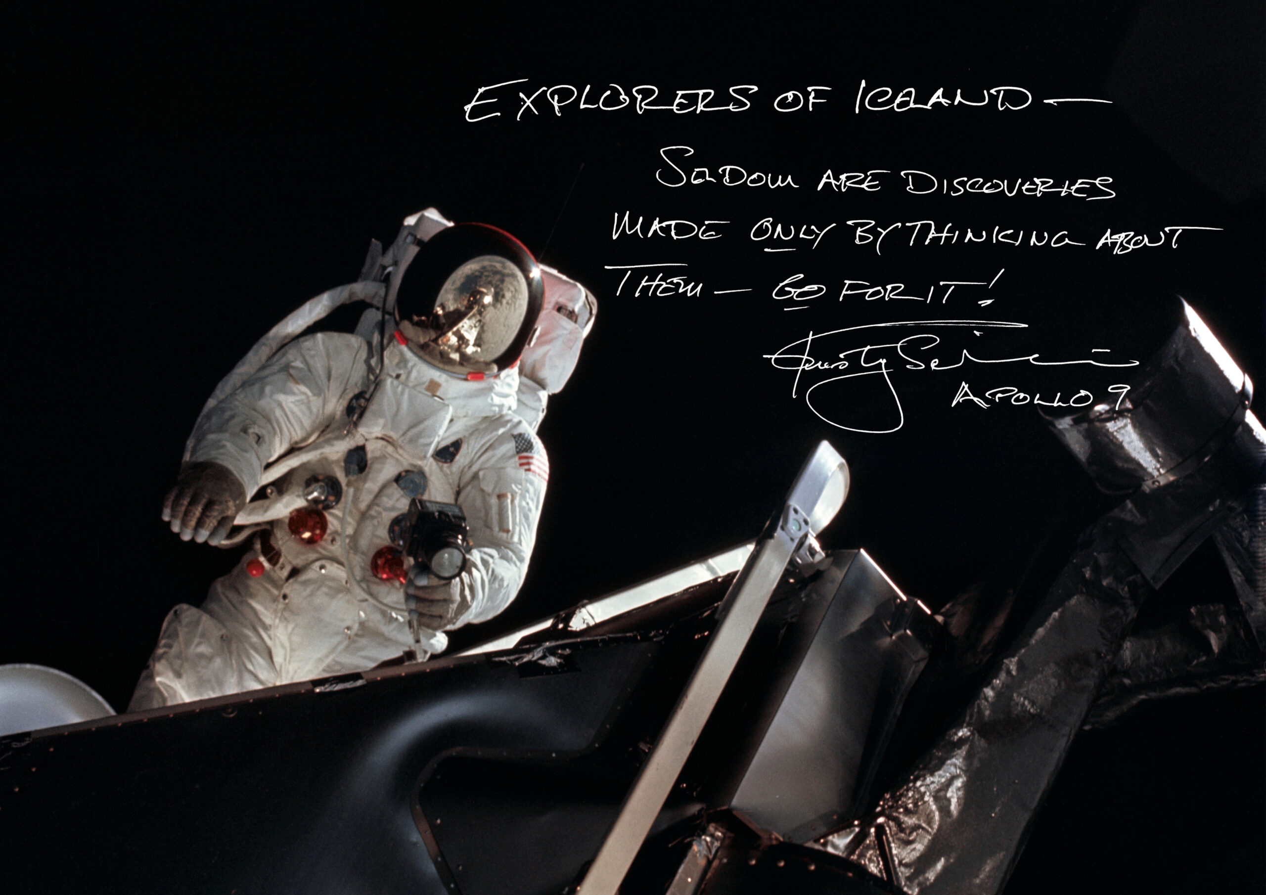 Næstu fjögur árin fóru 24 geimfara á braut um tunglið og 12 af þeim gengu á yfirborði þess, fyrst Neil Armstrong sumarið 1969. Flestir æfðu þeir sig fyrir ferðina hér í bakgarðinum okkar, í ægifögru landslagi Þingeyjarsýslna.